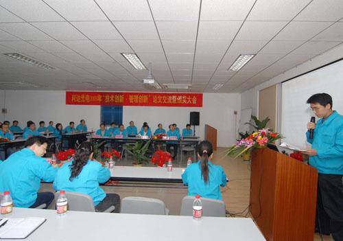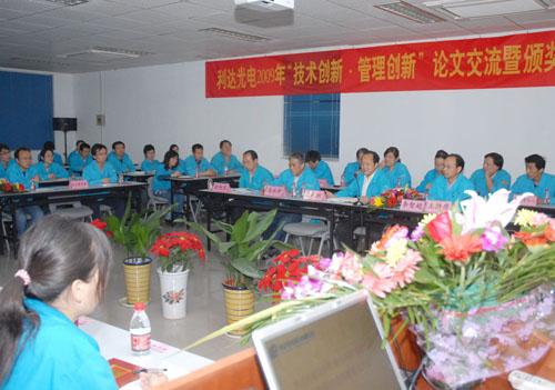 ??????? 深秋時(shí)節,正當公司廣大干群以百倍的努力,昂揚的精神狀態(tài),投入到大干一百天,全力沖刺年度經(jīng)營(yíng)目標的關(guān)鍵時(shí)刻,10月30日晚,利達光電舉辦了2009年“技術(shù)創(chuàng )新?管理創(chuàng )新”論文交流暨表彰大會(huì )。利達公司中高層管理人員,公司科技和技能帶頭人,各單位技術(shù)主管和骨干80余人濟濟一堂,相互切磋技藝,共享交流成果,以達到用科學(xué)發(fā)展的思路,提升利達技術(shù)?管理創(chuàng )新能力,培育創(chuàng )新文化,打造核心競爭力,推動(dòng)公司產(chǎn)業(yè)升級進(jìn)而促進(jìn)年度經(jīng)營(yíng)目標實(shí)現的目的?;顒?dòng)由利達公司副總經(jīng)理李智超主持。集團公司紀委副書(shū)記胡旭東應邀參加了會(huì )議。