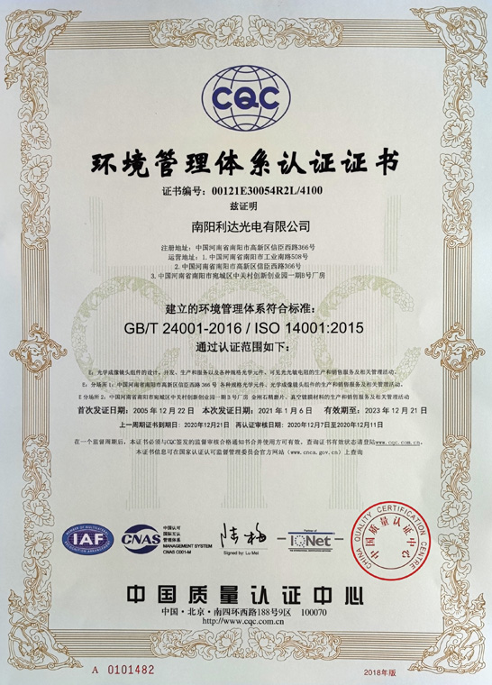 環(huán)境管理體系認證證書(shū)(中文)